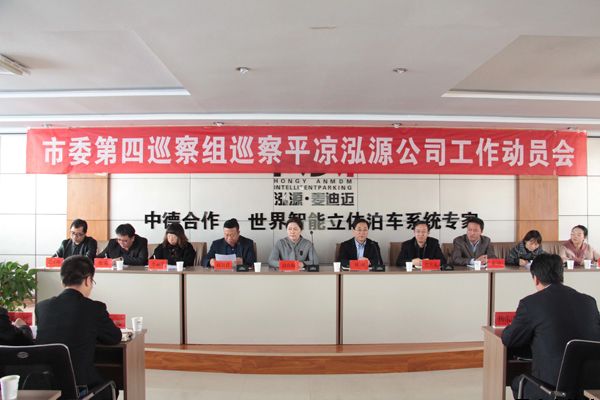 2019-03-312019年3月29日上午,市委第四巡察組巡察平?jīng)鲢垂竟ぷ鲃訂T會在甘肅泓源麥迪邁智能立體停車有限責任公司3樓會議室召開。市委巡察辦主任趙玖梅、市紀委監(jiān)委派駐市農(nóng)牧局紀檢監(jiān)察組組長劉剛、市委巡察辦巡察專員趙生寶出席會議并作講話。泓源公司黨委書記、董事